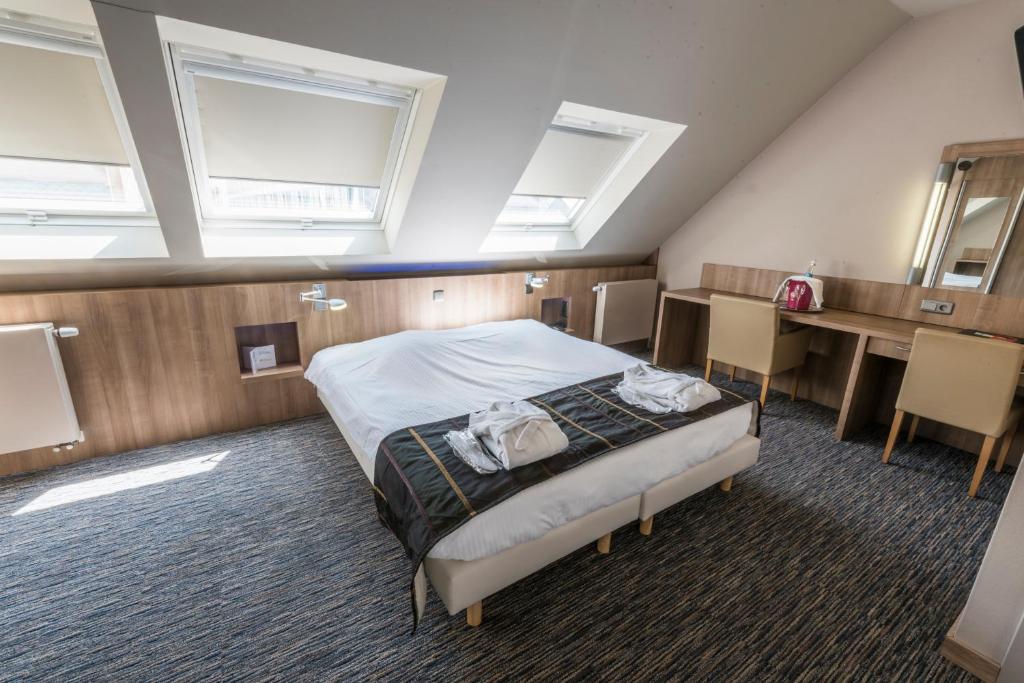 "Typical business hotel, comfortable size, bed and bathroom. Good location to center and train station. Welcoming staff. Good price/quality"