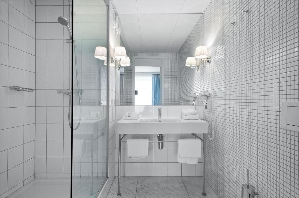 "Typical business hotel, comfortable size, bed and bathroom. Good location to center and train station. Welcoming staff. Good price/quality"