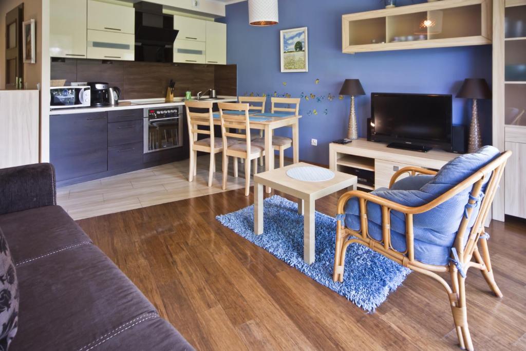 "Apartament przytulny zgodny z opisem. Bardzo dobry kontakt z właścicielką jaki i rezydentką. Podstawowe artykuły kawa, herbata , kapsułki do zmywarki, suszarka do włosów itd. były w apartamencie. Piękny osłonięty taras w pełni wyposażony również duży plus, nie wspomnę o kwiatach na nim :), na wyposażeniu również leżaki, parawany. Naprawdę fajny apartament myśl, że nie raz jeszcze do niego wrócimy."