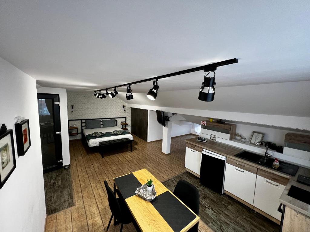 "It is a spacious, modern and quite luxurious studio apartment with a well equipped kitchen, a very comfortable bed and many other stylish and practical pieces of furniture. The owner Dorin is very friendly and helpful. The rental price is very affordable and really good value for money. I will definitely try to stay there again whenever I go back to Cluj."